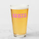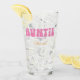 Cooles Tantentrinkglas mit eigens für den Kunden etablierten Datums pink und Name in hellorange.