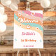 Groovy Retro Rainbow Geburtstagsparty Begrüßungszeichen