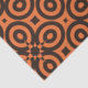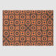 Das Produkt zeigt ein nahtloses, sich wiederholendes Muster mit einer Retro-Ästhetik aus den 1970er Jahren inspiriert. Das Design zeichnet sich durch konzentrische Kreise in Orange- und Brauntönen aus, die einen hypnotischen, auffälligen Effekt erzeugen. Zwischen den Kreisen sind kleine quadratische Formen miteinander verwoben, die dem Gesamtdesign einen geometrischen Kontrast verleihen. Das Muster ist lebendig und dynamisch, mit einem spielerischen, feinen Ambiente, das typisch für die 70er Jahre ist.