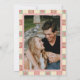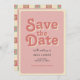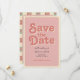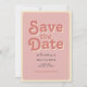 Diese gewagte Hochzeitskarte "Save the Date" umfasst ein grooves 70er-Thema. Die Vorderseite ist mit einem Vintagen Korallenrosa mit Retro-Schrift versehen, und die Rückseite hat Platz, um ein Foto hinzuzufügen, mit einem Rahmen mit lebhaften Blumen gepaart mit einem Retro-Schachbrettmuster. Dieses einfache Design ist ideal für Paare, die Vintagen Charme mit einer modernen Drehung Liebe. Ideal für Retro-inspirierte, Boho- oder Sommerhochzeiten, erweckt diese Karte eine lustige und freimütige Ästhetik. Entdecken Sie die passenden Artikel in unserer Hochzeitssuite, um das Aussehen zu vervollständigen!