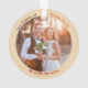 Ein Retro-Vinyl-Schallplattenschmuck aus den 70er Jahren, um Ihre ersten verheirateten Weihnachten als frisch vermählte Neugeborene zu feiern. Große Cremetöne, Braun und Orange. Dieses lustige, maßgeschneiderte Ornament verfügt auf einer Seite über ein Vinyl-Schallplattenbild mit dem Albumtitel "First Christmas as Mr. and Mrs." in einem Retro-Skript und Ihren Namen. Auf der Rückseite befindet sich Ihr Foto. Der Name des Ehepaares, der Ort der Hochzeit und das Datum werden auf einer kreisförmigen Grenze angezeigt. Wenn Sie Liebe oder Vintagen Stil, ist dies ein großer Pfeiler Ihrer Groovy Hochzeit. Ein nachdenkliches personalisiertes Geschenk für Neuvermählte. Der gesamte Text wird von Ihnen personalisiert. Label-, Rahmen- und Textfarben können im Entwurfswerkzeug angepasst werden. Die Farbe der Aufnahme ist schwarz.