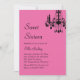 Ein Kristallleuchter, eine extravagante Art und ein heißer Schatten des rosa Sets der Ton für diese Einladung und Ereignis. Es wird auf dem grundlegenden Papier gezeigt; jedoch schlage ich den Schimmer des metallischen Eispapiers für ein bisschen mehr Glitz vor.