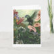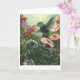 Schönes Gemälde von Wendy Carter eines Kolibri im Garten mit Nymphen, die sich in den Blume verstecken.