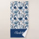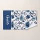 Handtuchhandtuch-Set mit Blumenmuster aus der reichen Marine und Ihrem Namen oder Sondertext in weißem Schrift auf der Tiefsee.