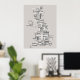 Eine typografische Textkarte von Großbritannien. Großstädte im Vereinigten Königreich werden auf der Karte angezeigt, die vollständig aus Text besteht.