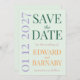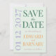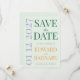 Verteilen Sie Ihre Hochzeitsneuigkeiten mit dieser frischen und einladenden Save-the-Date-Karte mit einem sanften Salbeigrün im Hintergrund und lavendel- und tagetesgelben Akzenten. Das minimalistische Design hebt die übergroßen Datumsnummern hinter eleganter Typografie hervor und kombiniert Waldgrün in Großbuchstaben mit staubigem Rosaschriftzug. Ideal für naturinspirierte oder Gartenhochzeitsfeiern mit einem fröhlichen, botanischen Flair.