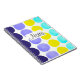 Stilvolles Notizbuch oder Tagebuch mit frischen, modernen handbemalten Aquarelltöne, große Dots-Design in dunkelblau, lila, gelb und türkis. Entworfen mit einem Lächeln von iolantesdesigns :-)!