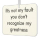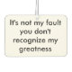 Du kennst dein phantastisches, warum also nicht alle anderen? Lass der Welt, dass sie schuld ist. Dieser lustige Lufterfrischer sagt: "Es ist nicht meine Schuld, dass du meine Größe nicht erkennst".