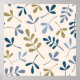 Illustratives Oberflächenmuster-Design von verschiedenen Blatt-Silhouetten in Blues und Goldfarbe auf einem cremefarbenen Hintergrund.