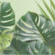 Monstera und Palmen Blätter auf hellgrünem Hintergrund