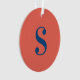 Einfache orangefarbene Ornamente verfügen über ein stylisches, großes dunkelblaues Monogramm auf jeder Seite. Fügen Sie einfach Ihren Initial in die Sidebar ein. Macht ein großartiges Geschenk. Um das kühne, minimale Design auf anderen Gegenständen zu sehen, klicken Sie auf den Link "Rocklawn Arts". Copyright ©Claire E. Skinner.