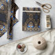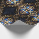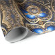 große blaue und goldene Steampunkherzen Geschenkpapier