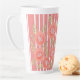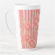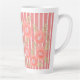 Der Korallenhintergrund auf diesem gemusterten, weißen Streifen Latte Cup kann in jede Farbe geändert werden, um Ihren Stil zu ergänzen. Große Blume sind entfernt, wenn Sie es vorziehen. Text kann zur Personalisierung hinzugefügt werden.