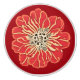 In einer großen, roten Kamelie-Blume, im inspirierten Jugendstil, auf tiefrotem Hintergrund