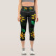 Schönes und einfaches Blumenmuster aus stilisierter Blume (Buntglas) in großer Größe für jeden Anlass. Design auf Capri Leggings mit schwarzem Farbhintergrund: Sie können die Hintergrundfarbe und die Größe des Designs leicht ändern, indem Sie auf die Schaltfläche Personalisieren oder anpassen klicken. Verfügbar in Leggings. Passende Accessoires, Heimprodukte, Büroprodukte, Elektronik und mehr...