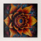 Riesige Blume Kopf blühen orange und blau. Lebendige Blumenkunst, entworfen um zu fesseln und inspirieren. Diese atemberaubende Abbildung zeigt eine atemberaubende Blume in voller Blüte und zeigt eine reiche Palette von feurigen Orangen, tiefer Blues und üppigen Rottönen. Jede Blüte ist sorgfältig detailliert und schafft eine komplexe und dynamische Komposition, die sich vor dem dunklen Hintergrund abhebt. Dieses Kunstwerk ist ideal, um jedem Raum eine Farbenpracht und Eleganz zu verleihen.