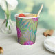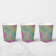 Große Blume mit grünen Blütenblättern und rosafarbenen Mittelpunkten auf türkisfarbenem Hintergrund, handbemalte Kunstwerke.