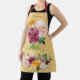 Schöne Aquarellbäume mit blühenden roten Bordeaux-, Orange- und Rosa-Blütenbäume mit grünem Blattwerk, zwei goldenem Kupferherz, und Ihr personalisierter Text (Name) machen ihr eine trendige, moderne gelbe Schürze.