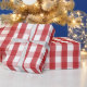 Ein Verpackungspapier mit dunkelrotem und weißem Gingham-Muster in großer Größe.