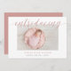 Moderne, elegante Geburtenankündigungen zeigen Ihr Lieblings-Foto in horizontaler oder landschaftsorientierter Form mit "Einführung" in staubigen Kalligrafiebeschriften in der Rose. Der Name und die Geburtsdaten des Babys erscheinen unten. Fügen Sie der Rückseite sechs zusätzliche Fotos in einem Collage-Layout hinzu, oder löschen Sie, um leer verlassen.