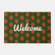 Große Erdbeertürmatte mit individuellem Willkommenstext. Fügen Sie Ihre eigene Nachricht, Familienname, Monogramm, Nachname oder lustiges Zitat hinzu. Niedliche Geschenkidee für neue Zuhause / Hauswärmung oder Verlobung / Jubiläum Party. Benutzerdefinierter Hintergrund Stilvolle Skripttypografie mit Fruchtmuster. Anpassbare Dokumentvorlagenvorlage. Erstellen Sie Ihre eigene kleine oder große Eintrittsmatte / Teppich für Eingangstür / Eingang oder Halle / Veranstaltungsort. Wohngestaltung / Dekoration für Ihr Haus individuell. Fügen Sie Ihre eigenen Monogramm Buchstaben Initialen oder Nachnamen hinzu. Fruchtige rote und grüne Lebensmittelgestaltung.