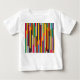 Dieser T - Shirt hat ein geometrisches Design aus bunten Streifen, die vertikal verlaufen.