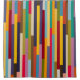 Dieser Duschvorhang hat ein geometrisches Design aus bunten Streifen, die vertikal verlaufen.