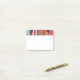 Dieses Post-It Notizblock hat ein geometrisches Design aus bunten Streifen, die vertikal verlaufen.