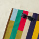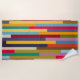 Dieses Strandtuch hat eine geometrische Form von bunten Streifen senkrecht laufen.
