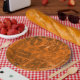Große fette Zahlen auf brauner Orangengrunge Textu Pappteller