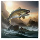 Dieses KI-Design hat einen Süßwasserfisch, der aus einem Bergfluss austretet.