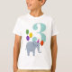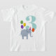 Ein glücklicher Elefant ist bereit zum Party mit bunten Ballons und einem Party, das dieses Shirt zu einer bezaubernden Wahl macht, um das Geburtstagskind mit seinem Alter in einem großen Aqua-Zahl zu feiern.