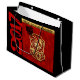 Große Geschenktasche mit den schwarzen und goldenen Hähnen (Ausschnittart des chinesischen Papiers) auf rotem Hintergrund mit dekorativer Beschriftung. Vergessen Sie nicht die ganze Sammlung: Grußkarte, Postkarte, Porto, Aufkleber… für Chinesisches Neujahrsfest oder Geburtstag (Tierkreiszeichen) ---------- Die Leute, die innerhalb dieser Datumsbereiche geboren sind, können gesagt werden, im "Jahr des Hahns" geboren gewesen zu sein, beim das folgende elementare Zeichen auch tragen: