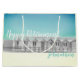 Große Ruhestandsgeschenktasche mit Strandhütten in Grauem, im Blau und im Gelb.