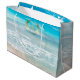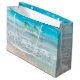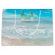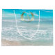 Große Geschenktasche | Moderne geometrische Strandhochzeit für Monogram | Eine moderne Drehung auf der Beach Wedding - Einzigartige Hochzeit für die BarefootBride™ von ©WhimsicalArtwork™ Eine spielerische Typografie im Text - mit Bride und Groom Vornamen-Initialen, die von einem Lorbeerkranz oben umgeben sind - in zwei Farben (aquamarin und gold) - ein koordinierendes tropisches Stranddesign vorne und hinten. - wenn Sie Hilfe benötigen, dann kontaktieren Sie mich bitte.