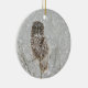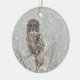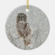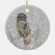 Eine wunderschöne große graue Eule in einem Winterschneesturm - ist ein großes Weihnachtsgeschenk für jemanden, der Eulen, Vögel, Wildtiere oder die zarten Feinheiten der winterlichen Natur Lieben.