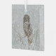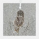 Eine wunderschöne große graue Eule in einem Winterschneesturm - ist ein großes Weihnachtsgeschenk für jemanden, der Eulen, Vögel, Wildtiere oder die zarten Feinheiten der winterlichen Natur Lieben.