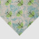 Ein Vintages Design großer grüner Insekten über einem blauen Damast und Zeitungshintergrund.
