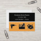 Große Heimwerkergeschäftskarten mit einfachem dennoch starkem Entwurf einschließlich ein Powerbohrgerät, eine Kreissäge und Werkzeugkastensymbole und orange, schwarzer und weißer grafischer ein Entwurf Augenfangens, der heraus steht und einen starken ersten Eindruck macht. Entworfen als Visitenkarteschablone, die Ihnen auf unserem hohen Kartenvorrat nannte dargestellt wurde manchmal, mollige Visitenkarten.
