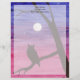 Aquarell und Pen & Tinte aus einer Silhouette der Großen Hornhaut, die gegen den sternigen Nachthimmel im Winter geschrumpft ist und auf einem nackten Baum unter dem Vollmond steht.