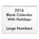 In großen 2016 Blank Kalender mit Feiertagen mit großen Zahlen finden Sie personalisierbaren Text auf der Titelseite und Feiertage und Veranstaltungen in den USA und Kanada.