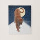 Illustration eines Berglöwen im Schnee, nachts, mit Vollmond dahinter. Dieser ebenfalls als Cumgar oder Puma bekannte Bestand ist in Amerika beheimatet, seine Reichweite reicht vom kanadischen Yukon bis zu den südlichen Anden in Südamerika und ist der am weitesten verbreitete aller großen wild lebenden Tiere der Western Hemisphäre. Digitale Malkunst. Puzzle für große Katzenliebhaber.
