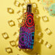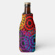 Diese Flasche cooler hat ein Schwarzes Geschichtsbild von großen Kreisen gebildet, die aus Rindrop-Formen und Kreisen in Rot, Gelb, lila, Grün und Türkis gebildet werden.