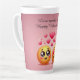 Genießen Sie die Wärme der "Tall Latte Liebe", einer reizvollen Latte-Tasse für Paare mit herzförmigen Griffen, die sich verschließen. Der zauberhafte rosa Hintergrund beherbergt bezaubernde Emojis, die einen liebevollen Blick teilen, was jeden Schluck zu einem gemeinsamen Moment der Zuneigung macht.