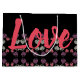 Stilvolle große Geschenktasche mit einem Herzdruck in Korallen und Purpur, in schwarz hervorgehoben. Der Text kann auf jede Nachricht personalisiert werden, oder der Text kann entfernt werden. Der schwarze Hintergrund kann auch auf eine beliebige Farbe umgeschaltet werden.