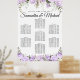 Schöne, lila Rose und eine üppige Vegetation schaffen eine üppige Kulisse am oberen und unteren Rand dieses Blumenkatalogs. Die Namen der Ehepaare sind in einem klassischen Script-Schriftart geschrieben. Dieses elegante Sitzdiagramm ist Teil der Violette-Kollektion, die Zeichen, Programme, Menüs, Platzkarten und Tischdekoration enthält, die Ihnen lasse, Ihre Hochzeitsfeier und Ihren Empfang einfach und kostengünstig zu personalisieren.