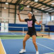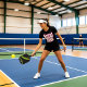 Funny pickleball Ladys' T - Shirt mit riesigem rosa-weißem Slogan Große Köpfe dink gleich Happy Tragen und beste Wünsche für Ihre zukünftigen Spiele!
