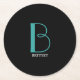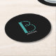Große Monogramm und Name, Aquamarin/weiß, schwarz Runder Pappuntersetzer