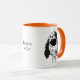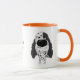 Tasse des englischen Setzers mit einer Vorderansicht der großen Nase eines englischen Setzers auf einer Seite der Tasse und ihr entzückendes hinteres Ende unterstützen Ansicht über die andere Seite der Tasse. Hintergrund-Farben und Text können geändert werden. Klicken Sie einfach an Customize es Knopf.