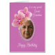 Eine Geburtstagskarte für eine Urgroßmutter. Orchideen symbolisieren Liebe, Luxus und Kraft - Eigenschaften, die die Schönheit ihres Geistes widerspiegeln. An ihrem Geburtstag wünschen Sie sich, dass ihr Tag so exquisit und unvergesslich ist wie diese Blüten. Fügen Sie ihr Foto hinzu, um eine einzigartige Karte speziell für sie zu erstellen.